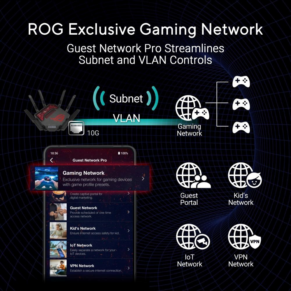 | Herné využitie | Zrýchlenie hry / akcelerácia Herný radar WTFast Mobilný herný režim Urychlovač zariadenia ROG_First OpenNAT (herný profil) Herný port Herná sieť |