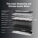 - Upevnenie tesnenia a petivrstvné tlmenie: Jedna silikónová a štyri vrstvy PORON® pohlcujú vibrácie a pinganie spínačov pre dokonalú akustiku