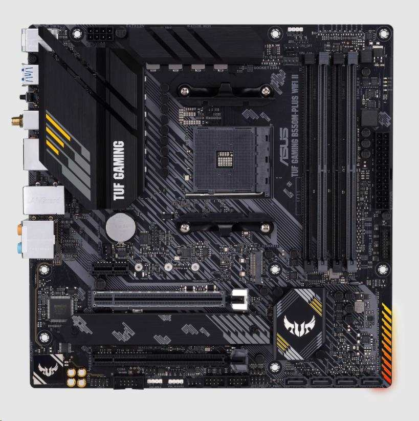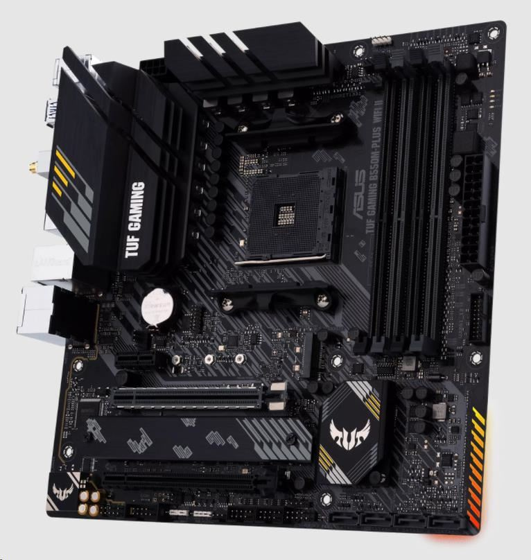 Základná doska AMD B550 (Ryzen AM4) micro ATX s rozhraním PCIe 4.0, duálny M.2, 10 výkonových stupňov DrMOS, Wi-Fi 6, 2.5 Gb Ethernet, HDMI, DisplayPort, SATA 6 Gb/s, USB 3.gen 2 Type-A a Type-C®, BIOS FlashBack™ a podpora osvetlenia Aura Sync RGB
