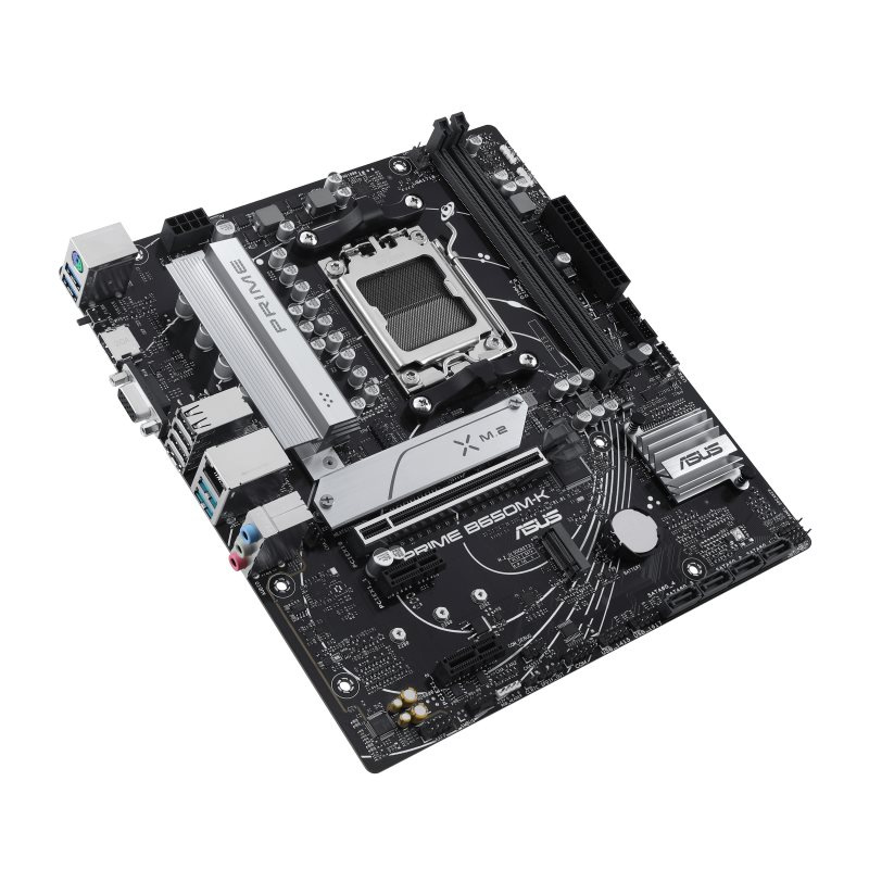 PRIME B650M-K is equipped with outstanding features, including 6-layer PCB design, DDR5, PCIe 5.0 M.2 support, Realtek 2.5Gb Ethernet, USB 3.2 Gen 2 ports, front USB 3.2 Gen 1 Type-C®, BIOS FlashBack™, VGA/HDMI™, Addressable Gen 2 headers, Aura RGB header, Aura Sync, Q-LED Core, ASUS OptiMem II, Fan Xpert 2+, Two-Way AI Noise Cancellation, Armoury Crate, ASUS 5X PROTECTION III and SafeSlot Core+, which will bring users maximizing performance, stability and compatibility for the very best DIY PC experiences.