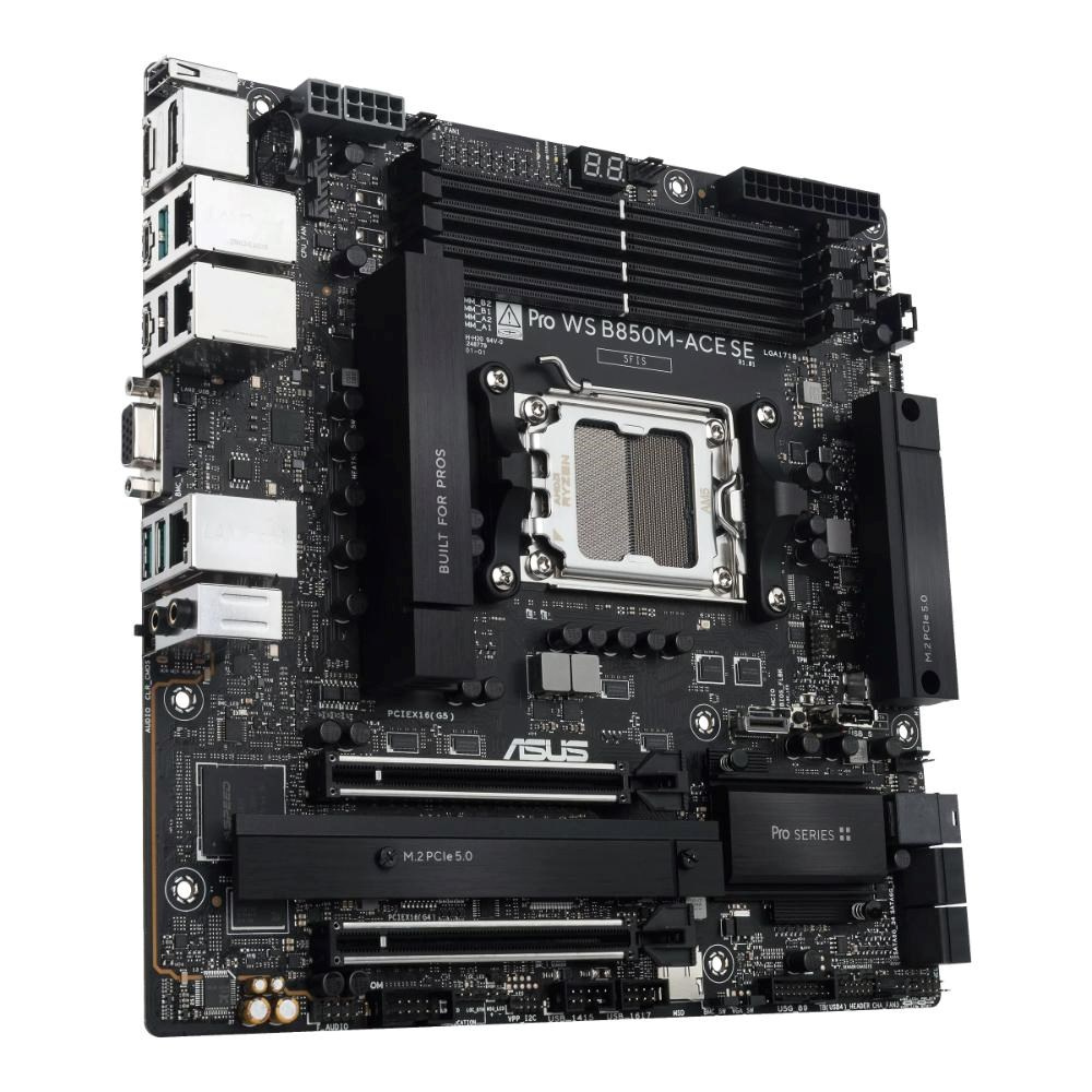 ASUS Pro WS B850M-ACE SE AMD Micro-ATX základná doska, s správou na úrovni servera IPMI, PCIe 5.0 x 16, PCIe 5.0 M.2, PCIe 5.0 MCIO, konektor U.2, 10Gb a 2.5Gb Ethernet, pripravená pre USB4.