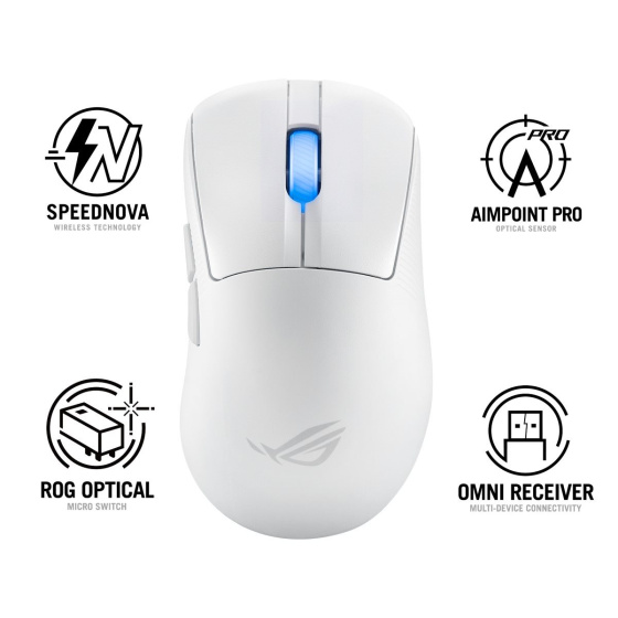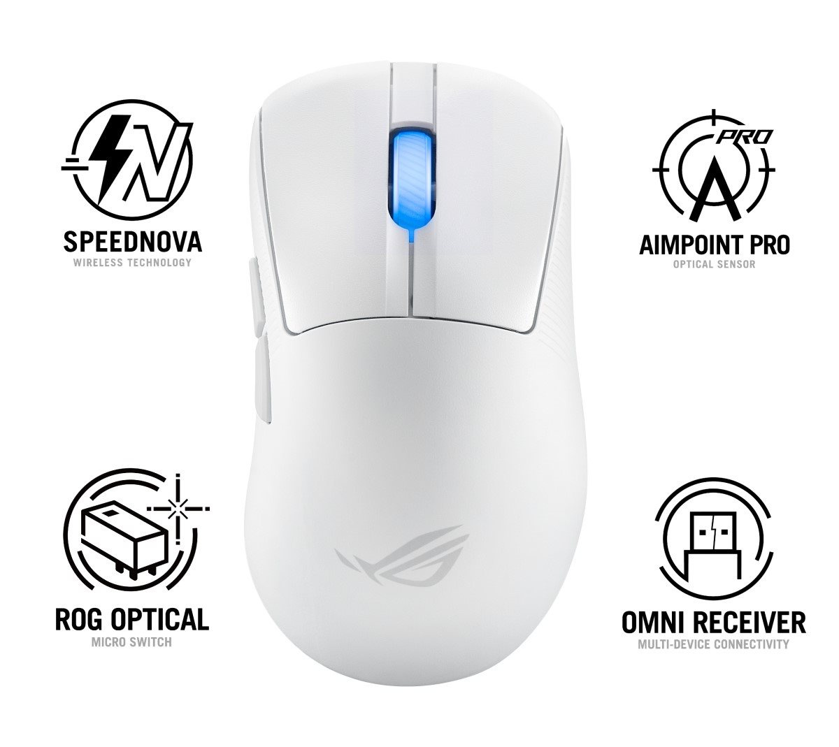 - Bezdrôtová technológia ROG SpeedNova: Spoľahlivý bezdrôtový 2,4 GHz RF výkon s nízkou latenciou a optimalizovanou energetickou účinnosťou