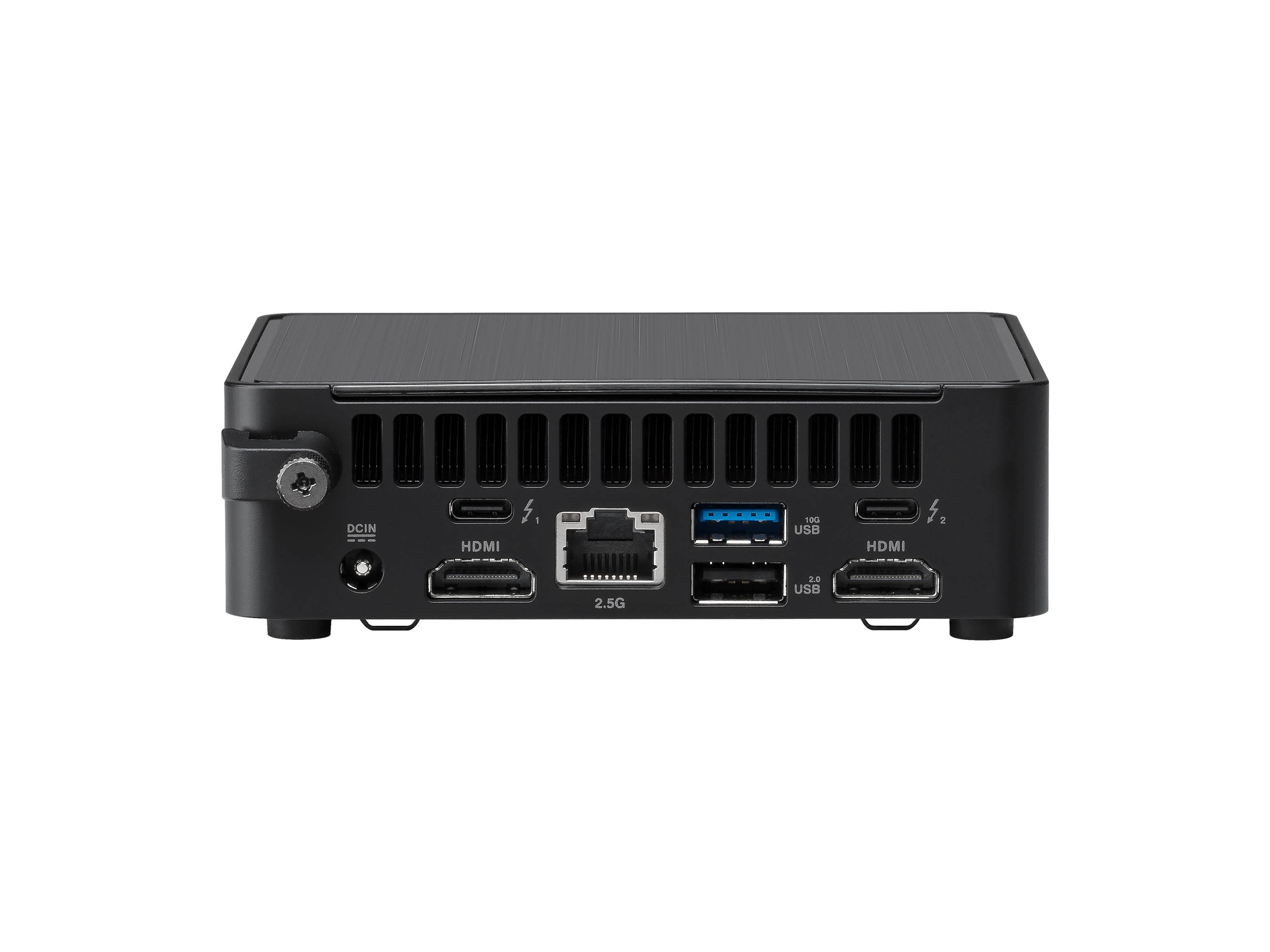 ASUS NUC 14 Pro Kit (NUC14RVKU7000R2)Operační systém: ne Procesor: Intel Core Ultra 7 155H (16 jader - 6P + 8E + 2LPE, 22 vláken, P-core 1,4/4,8 GHz, E-core 0,9/3,8 GHz, LPE-core 0,7/2,5 GHz, 24 MB cache) Paměť: ne Maximální velikost paměti: 96GB (2x 48GB) Typ paměti: DDR5 5600 SO-DIMM Počet slotů (celkem/volných): 2x SO-DIMM (2/2) Pevný disk: ne Pozice pro interní jednotku: 1x M.2 2280 PCIe Gen4x4 NVMe SSD + 1x M.2 2242 PCIe x4 NVMe SSD Grafická karta: Integrovaná Intel Arc 8-cores iGPU Síť: 1x Intel® i226V 2,5G LAN Bezdrátová komunikace: WLAN + Bluetooth (Intel® Wi-Fi 6E AX211, 2x2 a Bluetooth® 5.3) Napájení: 120W napájecí adaptér Přední a boční porty: * 1x USB 3.2 Gen 2x2 typ C * 2x USB 3.2 Gen 2 typ A * 1x Kensington Lock Zadní porty: * 2x Thunderbolt 4 typ C * 1x USB 3.2 Gen 2 typ A * 1x USB 2.0 typ A * 2x HDMI 2.1 (TMDS) * 1x RJ45 LAN * 1x DC-in Rozměry: 117x112x37mm Hmotnost: 480g Příslušenství: * síťový adaptér * napájecí kabel * informační leták * záruční list * držák VESA Záruka: 3 roky Testované kompatibilní paměti jsou uvedeny na stránkách výrobce