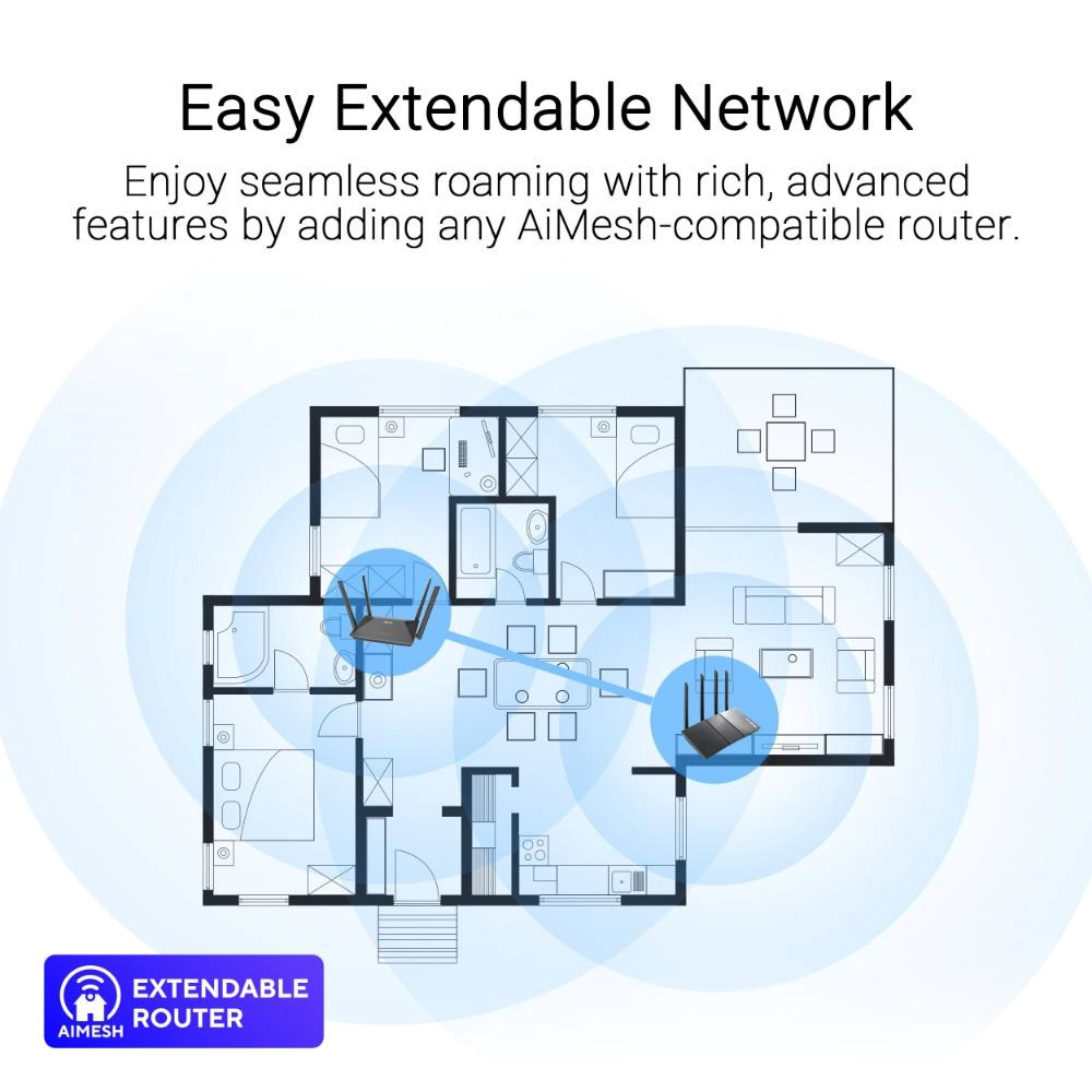 ASUS RT-AX52 Pro (AX3000) Dvoupásmový WiFi 6 rozšíriteľný router, okamžitá ochrana, plánovanie rodičovskej kontroly, vstavaná VPN, kompatibilný s AiMesh