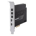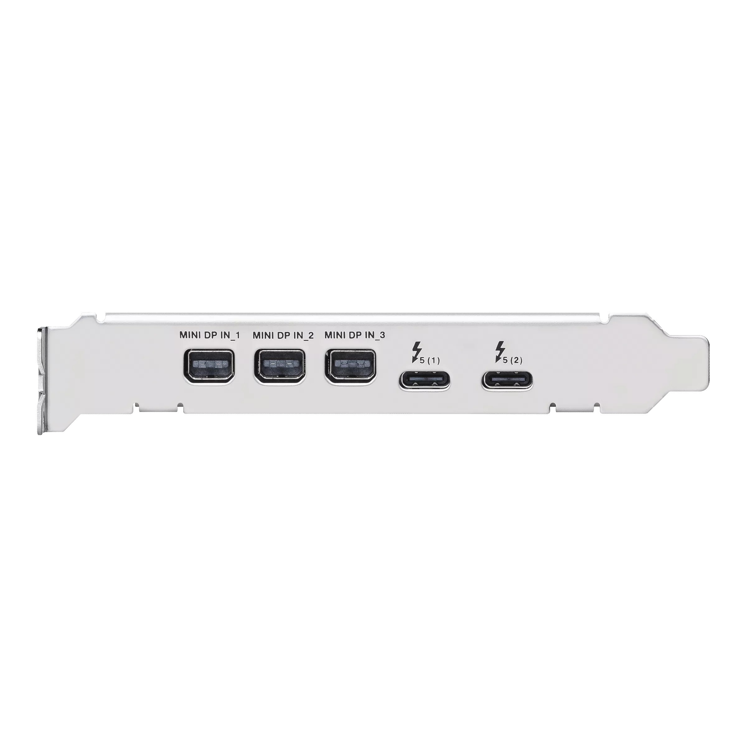 Čipset: Intel® JHL9580 Thunderbolt 5 Externí porty: * 2x USB typ C® – až 120 Gb/s pro zařízení Thunderbolt™ a USB4® – podpora 1x USB typ C® a 1x USB typ C® až celkem 130 W s Flexibilní funkce FastCharge – výstupní napájení USB typ C®: max. 20V/4,8A * 3x mini DisplayPort IN * 1x 6kolíkový napájecí konektor PCIe pro flexibilní funkci FastCharge * 1x USB 2.0 header * 1x Thunderbolt™ header Rozhraní: PCIe 4.0 x4 Rozměry: 119,5x88,9mm