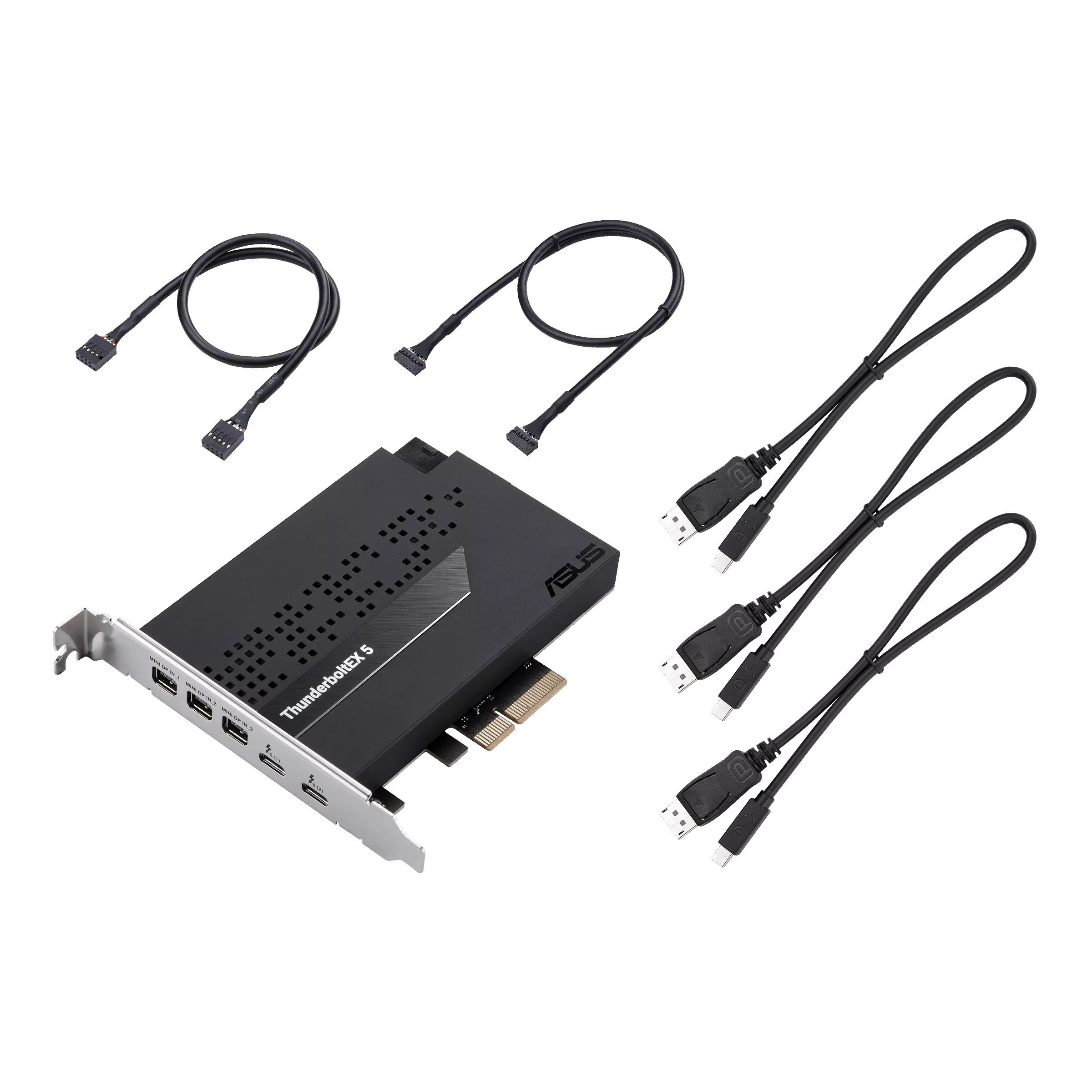 Karta ASUS ThunderboltEX 5 nabízí šířku pásma až 120 Gb/s Thunderbolt™ 5, podporu DisplayPort™ 2.1 s kompatibilním GPU, kompatibilitu s USB4® a navíc podporu až pěti zařízení Thunderbolt™.