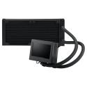 S ROG Ryujin III to pôjde lepšie než dobre. Jeho priestranný 3,5-palcový LCD displej zobrazuje živé systémové štatistiky alebo vaše vlastné umelecké diela a animované GIFy. V spodnej časti je zabudovaný ventilátor vylepšený o Axial-tech, ktorý zlepšuje teplotu VRM základnej dosky až o 35 stupňov Celzia, a kombinácia pumpy Asetek a studenej dosky 8. generácie zabezpečuje ešte nižšie teploty CPU. Kvapalina je vedená pomocou veľkoryso dlhých opletených trubiek a chladená radiátorom s vyššou kapacitou a tromi skvele tichými 120mm ventilátormi Noctua.