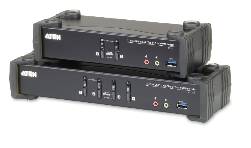 Aten CS1922 2-port 4K DisplayPort KVMP 3.0 přepínač umožní jednomu uživateli sdílet dva připojené počítače za pomocí jedné klávesnice, myši a monitoru. Přepínač má připojení pomocí DisplayPort kabelů, má integrovaný USB 3.0 2 portový HUB pro připojení dalších sdílených zařízení, podporu audia 2.1 Hlavní předností je však plná podpora 4K rozlišení obrazu při 60 Hz.