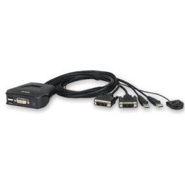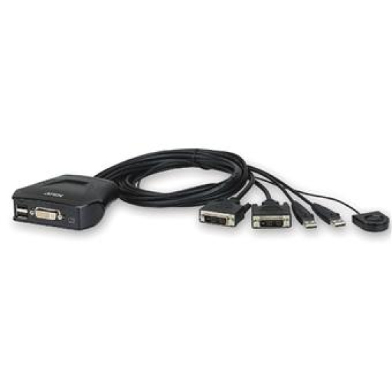 Aten 2-port DVI KVM USB mini, integrované kabely, tlačítko pro přepínání