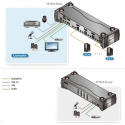 Prepínač je pripojený pomocou káblov DisplayPort, má integrovaný USB 3.0 2 portový HUB na pripojenie ďalších zdieľaných zariadení, podpora zvuku 2.1