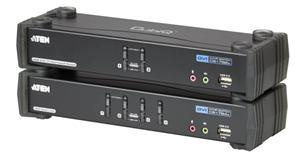 CS1784A USB DVI Dual Link KVMP přepínač kombinuje funkce 4 portového KVM switche a 2 portového USB Hubu s obrazem digitální kvality DVI a 7 kanálovým audiem. Podporuje také funkce jako 120Hz 3D display, podporu herních klávesnic, přepínání portů pomocí myši. Jedna USB konzole s DVI monitorem kontroluje dvě PC.