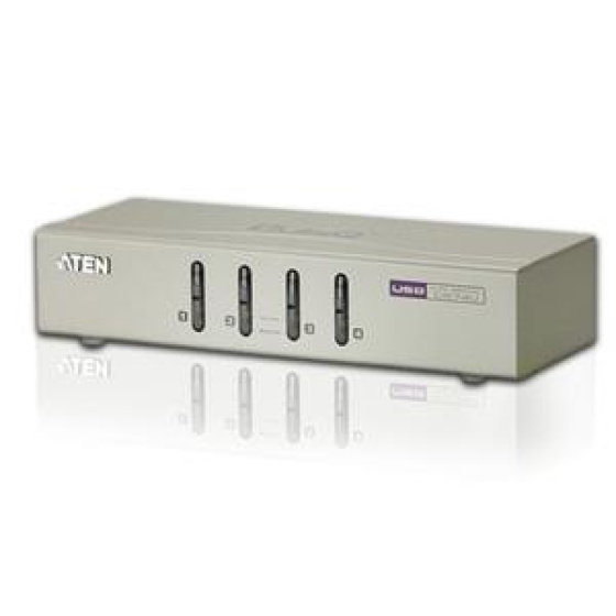 ATEN CS-74U 4-Port USB KVM přepínač je jednotka, která umožní uživateli ovládat čtyři počítače z jedné KVM konzole (klávesnice a myš, audio a VGA monitor). Přepíná se na předním panelu pomocí tlačítek. Přepínač není nutno nijak nastavovat, stačí zapojit kabeláž a zařízení je připraveno k použití. *jedna konzole obsluhuje 4 PC *výběr počítače pomocí tlačítka na předním panelu počítače *podpora více platforem: Windows/Linux/Mac *podpora audia 2.1 kanálů *video rozlišení až 2048 x 1536; DDC2B *podpora zapojování portů USB za chodu *nevyžaduje žádné napájení *kabely pro propojení s PC v sadě (nic dalšího pro propojení již nepotřebujete)