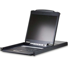 KVM přepínač s integrovanou klávesnicí, touchpadem a LCD 19" ve skladném vysouvacím šuplíku. Vhodný do serverové místnosti, kde Vám ušetří místo. Ke KVM přepínači je možno připojit až 16 PC s rozhraním USB nebo PS/2, je montovatelný do racku. Možnost přepínač ovládat tlačítek, klávesovou zkratkou nebo přes vestavěné OSD menu.