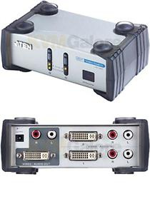 Popis ATEN DVI prepínač 2 PC - 1 DVI monitor+2xcinch+DO