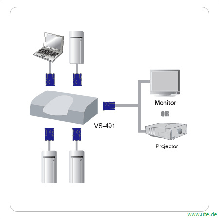 Aten VS-491- elektronický video přepínač 4 PC - 1 VGA
