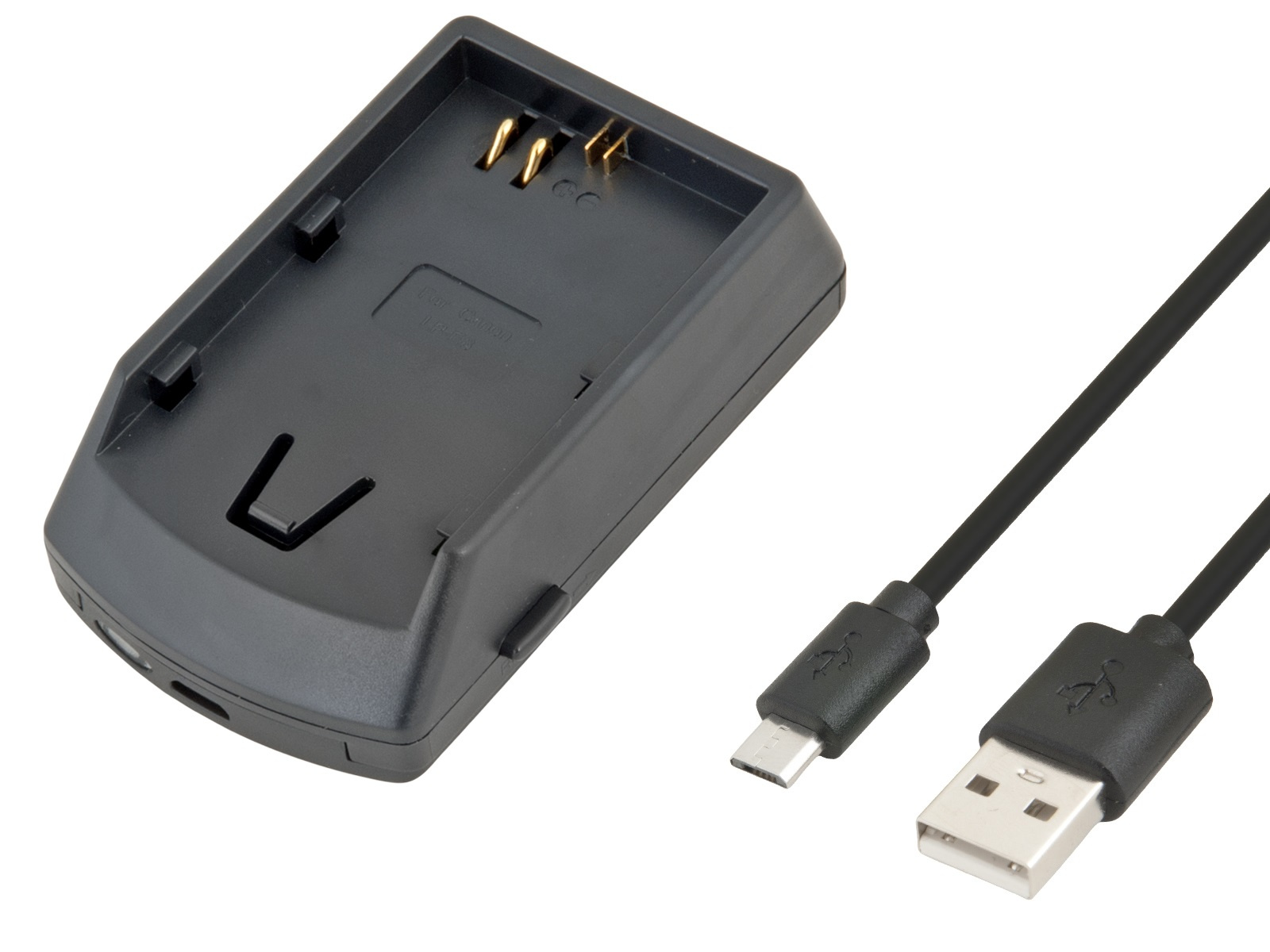 Nabíječka s Micro-USB vstupem pro baterie do fotoaparátů a videokamer.