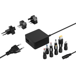Univerzální nabíjecí adaptér pro notebooky AVACOM QuickTIP 45W dokáže se svými 9 různými konektory napájet drtivou většinu vyráběných notebooků oblíbených značek Acer, Asus, Compaq, Dell, Fujitsu/Siemens, Gateway, HP, LG, Lenovo, MSI, Packard Bell, Samsung, Toshiba, eMachines i jiných zařízení, vyžadujících napájení ze sítě.