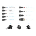 Sada tří cestovních zástrček pro zapojení nabíjecího adaptéru přímo do zásuvky umožňuje použití v zemích EU, v USA a Velké Británii.