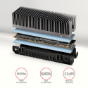 AXAGON CLR-M2XT ALU je pasívny hliníkový chladič určený na intenzívne chladenie výkonných NVMe M.2 SSD. Univerzálny chladič je možné použiť pre karty M.2 s rozmermi 22 x 80 mm. Dodávané tepelné podložky umožňujú inštaláciu chladiča pre všetky jednostranné a obojstranné M.2 SSD.