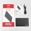 Popis AXAGON EE25-SL, USB 3.2 Gen 1 - SATA 6G, 2.5" SLIDE box, bezskrutkový, čierny