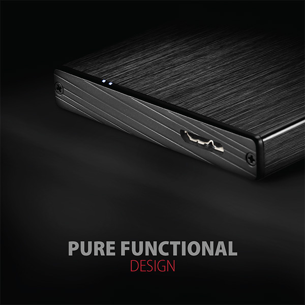 Ľahký a zároveň odolný odliatok hliníkovej skrine pre dokonalú mechanickú ochranu disku a výborný odvod tepla. Decentne tvarovaná skriňa s brúseným povrchom zaručuje elegantný štýl a bráni nežiadúcim odtlačkom prstov.