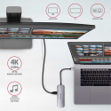HDMI výstup poskytuje kvalitní obraz až do rozlišení 4K/30Hz Ultra HD a podporuje přenos vícekanálového zvuku. Podporována jsou také oblíbená hráčská rozlišení WQHD 2560 x 1440 při 60Hz nebo FullHD 1920 x 1080 při 60, 100 a 120Hz max. Pro správné fungování video výstupu je nutné, aby USB-C port notebooku podporoval DisplayPort Alternate Mode (DP Alt Mode) nebo Thunderbolt 3.