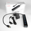 Popis AXAGON HUE-SA7BP, 7x USB 3.0 ALU CHARGING hub, vr. AC adaptéra, kábel USB-A 40cm