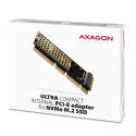 Interní adaptér AXAGON PCEM2-1U umožňuje připojení M.2 SSD disku do stolního počítače pomocí sběrnice PCI-Express. Promyšlený design a ultra kompaktní rozměry adaptéru dovolují snadné použití ve stolním počítači, který není vybaven M.2 slotem. Karta je také ideální pro rack 1U server a low profile skříně. Unikátní konstrukce umožňuje použití nejen v x16 ale i v x4 a x8 slotech. Adaptér podporuje použití NVMe (PCI-Express) M.2 SSD disků, jednostranných i oboustranných. Redukce nemá omezení kapacity SSD disků a lze použít M.2 karty až do rozměru 22x80 mm. Díky rozhraní PCI-Express 3.0 4-lane je možno dosáhnout rychlostí až 8GBps. Teplovodivá podložka a větrací poměděné otvory napomáhají lepšímu odvodu tepla vzniklého při provozu M.2 SSD disků. LED indikace signalizuje připojení a přenos dat.