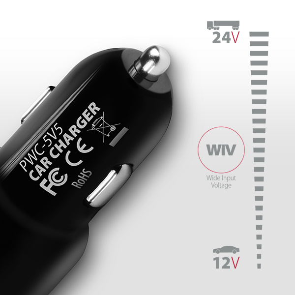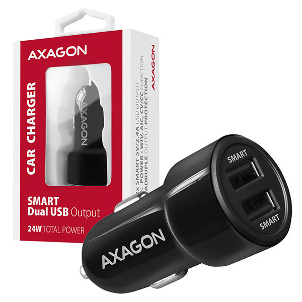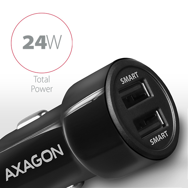 Popis AXAGON PWC-5V5, SMART nabíjačka do auta, 2x port 5V-2.4A + 2.4A, 24W