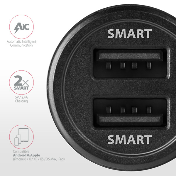 Dva USB výstupy SMART 5V/2.4A umožní nabíjanie väčšiny mobilných zariadení.