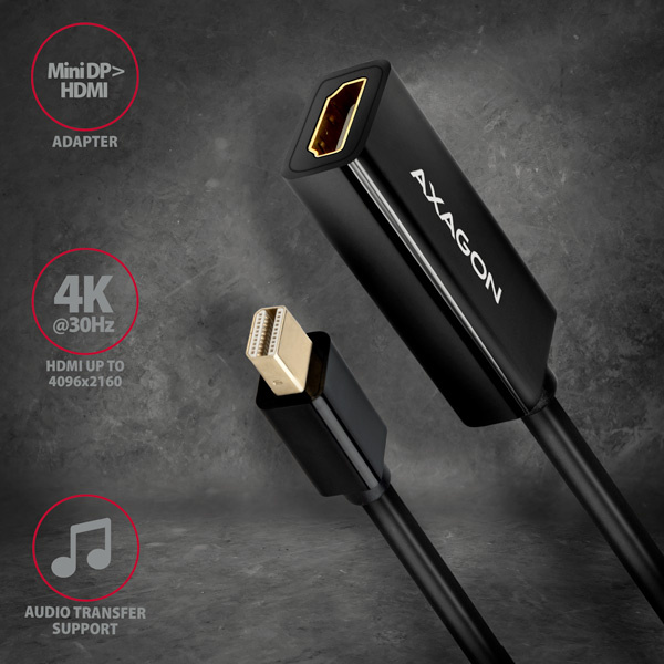 Popis AXAGON RVDM-HI14N, Mini DisplayPort -> HDMI 1.4 redukcia/adaptér, 4K/30Hz