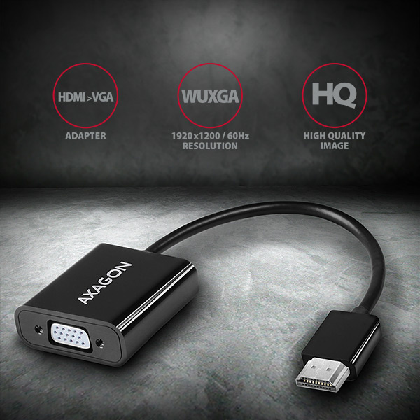 HDMI -> VGA aktivní adapter AXAGON RVH-VGAN s audio výstupem pro připojení staršího VGA monitoru/TV/projektoru k počítači nebo jinému zařízení s výstupem HDMI. Redukci lze použít i se set-top boxy nebo herními konzolemi Xbox a PlayStation.