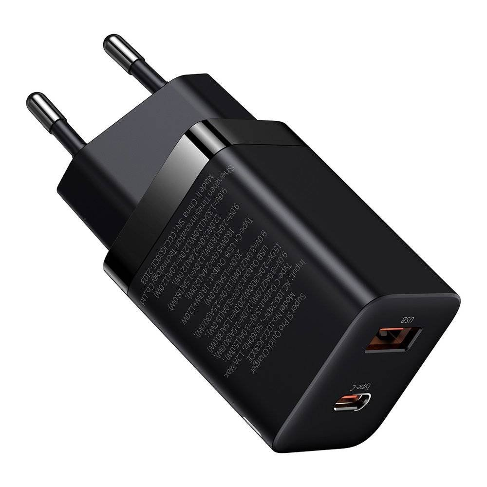 Baseus CCSUPP-E01 Super Si Quick Nabíjačka USB + USB-C 30W Black