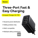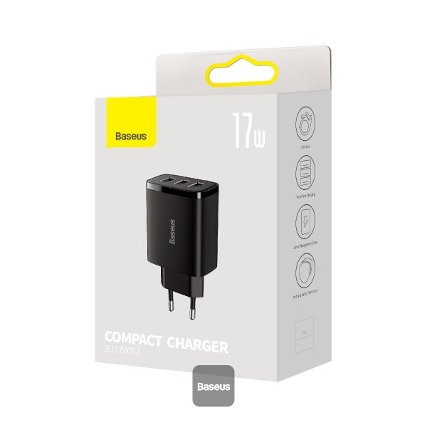 Baseus nabíjačka do siete Compact 3xUSB 17W čierna