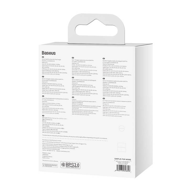 Baseus GaN5 Pro Ultra Slim 65W síťová rychlonabíječkaVlastnosti* výstupní výkon 65W* vyměnitelný ada
