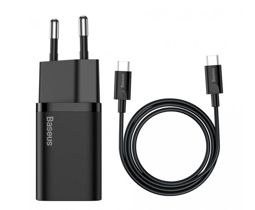 Popis Baseus rýchlonabíjačka do siete Super Si USB-C PD QC 25W (s káblom USB-C na USB-C) čierna