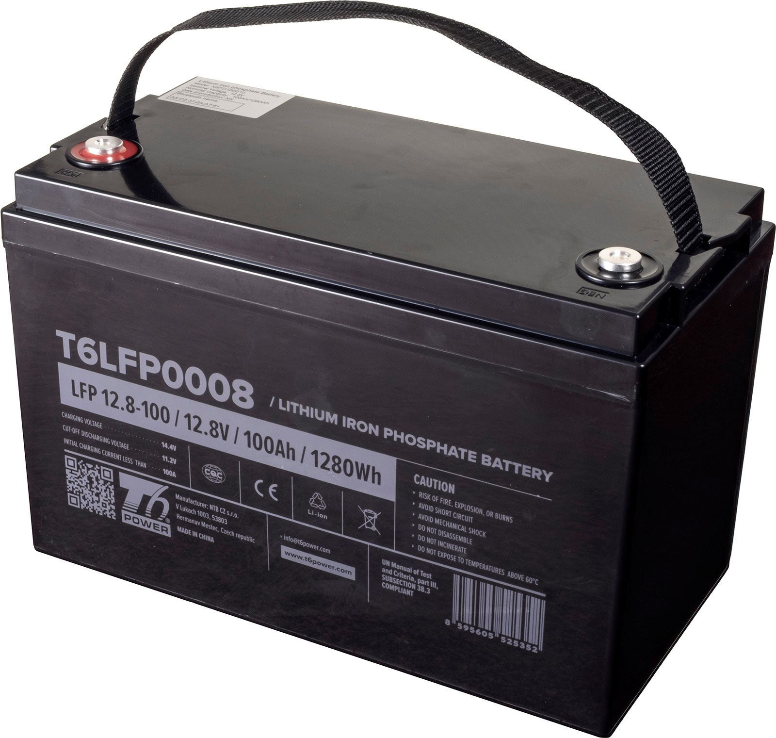 Zapomeňte na omezení olověných baterií! Baterie T6 Power LiFePO4, 12.8V, 100Ah, 1280Wh, Bluetooth, T16 představuje revoluční řešení pro aplikace, které vyžadují spolehlivý, výkonný a dlouhodobý zdroj energie. Díky pokročilé technologii LiFePO4 vám tato baterie přináší nesrovnatelně delší cyklickou životnost a celkovou výdrž, větší kapacitu a maximální bezpečnost.