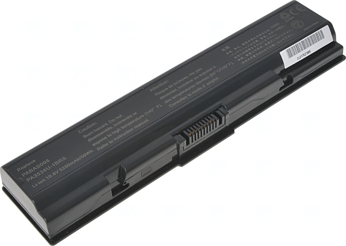 Typ: Li-ion Kapacita: 5200 mAh (56 Wh) Barva: černá Napětí: 10.8 V Rozměry: 205.6x51.8x20 mm Hmotnost: 298 g Produktová čísla: PA3533U-1BAS, PA3533U-1BRS, PA3534U-1BAS, PA3534U-1BRS, PABAS098 Kompatibilní modely: Toshiba Dynabook AX/52 serie, Toshiba Dynabook AX/53 serie, Toshiba Dynabook AX/54 serie, Toshiba Dynabook AX/55 serie, Toshiba Dynabook TX/65 serie, Toshiba Dynabook TX/66 serie, Toshiba Dynabook TX/67 serie, Toshiba Dynabook TX/68 serie, Toshiba Equium A200 serie, Toshiba Equium A300D serie, Toshiba Equium L300 serie, Toshiba Satellite A200 serie, Toshiba Satellite A202 serie, Toshiba Satellite A203 serie, Toshiba Satellite A205 serie, Toshiba Satellite A210 serie, Toshiba Satellite A215 serie, Toshiba Satellite A300 serie, Toshiba Satellite A300D serie, Toshiba Satellite A305 serie, Toshiba Satellite A305D serie, Toshiba Satellite A350 serie, Toshiba Satellite A350D serie, Toshiba Satellite A355 serie, Toshiba Satellite A355D serie, Toshiba Satellite A500 serie, Toshiba Satellite A505 serie, Toshiba Satellite A505D serie, Toshiba Satellite L201, Toshiba Satellite L202, Toshiba Satellite L203, Toshiba Satellite L205, Toshiba Satellite L300 serie, Toshiba Satellite L300D serie, Toshiba Satellite L305 serie, Toshiba Satellite L305D serie, Toshiba Satellite L450 serie, Toshiba Satellite L450D serie, Toshiba Satellite L455 serie, Toshiba Satellite L455-S5975, Toshiba Satellite L455D serie, Toshiba Satellite L500 serie, Toshiba Satellite L500D serie, Toshiba Satellite L505 serie, Toshiba Satellite L505D serie, Toshiba Satellite L550 serie, Toshiba Satellite L550D serie, Toshiba Satellite L555 serie, Toshiba Satellite L555D serie, Toshiba Satellite M200 serie, Toshiba Satellite M202, Toshiba Satellite M203, Toshiba Satellite M205 serie, Toshiba Satellite M206, Toshiba Satellite M207, Toshiba Satellite M208, Toshiba Satellite M209, Toshiba Satellite M211, Toshiba Satellite M212, Toshiba Satellite M215, Toshiba Satellite M216, Toshiba Satellite Pro A200 serie, Toshiba Satellite Pro A200GE serie, Toshiba Satellite Pro A200HD serie, Toshiba Satellite Pro A200SE serie, Toshiba Satellite Pro A210 serie, Toshiba Satellite Pro A300 serie, Toshiba Satellite Pro A300-192, Toshiba Satellite Pro A300-193, Toshiba Satellite Pro A300-194, Toshiba Satellite Pro A300-195, Toshiba Satellite Pro A300-1C2, Toshiba Satellite Pro A300D serie, Toshiba Satellite Pro A300D-131, Toshiba Satellite Pro A300D-132, Toshiba Satellite Pro A300D-13E, Toshiba Satellite Pro A300D-13S, Toshiba Satellite Pro L300 serie, Toshiba Satellite Pro L300-EZ1000 serie, Toshiba Satellite Pro L300-EZ1004X, Toshiba Satellite Pro L300-EZ1005X, Toshiba Satellite Pro L300D serie, Toshiba Satellite Pro L300D-EZ1001V, Toshiba Satellite Pro L300D-EZ1002X, Toshiba Satellite Pro L450 serie, Toshiba Satellite Pro L450D serie, Toshiba Satellite Pro L500 serie, Toshiba Satellite Pro L500D serie, Toshiba Satellite Pro L550 serie, Toshiba Satellite Pro P300-1CG