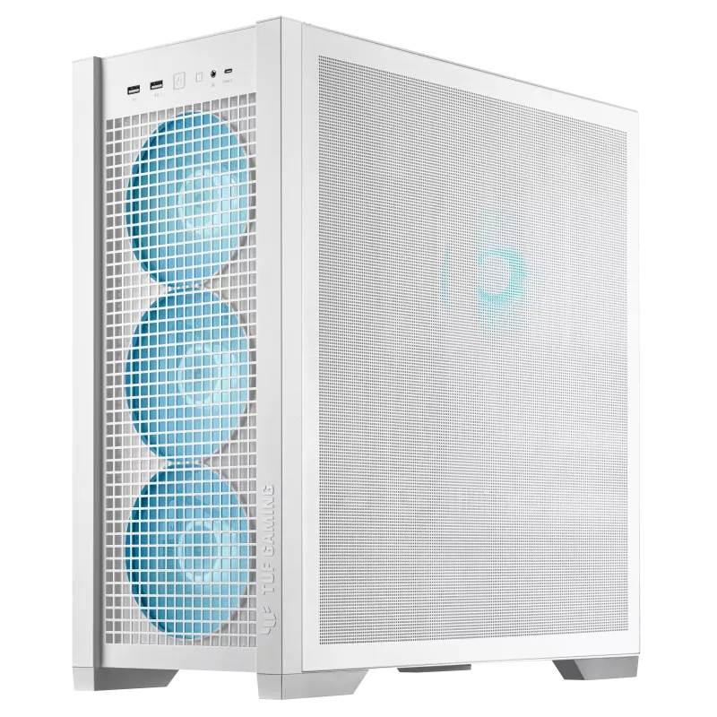 TUF Gaming GT302 ARGB je midtower ATX skrinka so štyrmi 140 x 28 mm ARGB ventilátormi pre vysoký prietok vzduchu a statický tlak, výmenné bočné panely a podpora základnej dosky so skrytými konektormi.