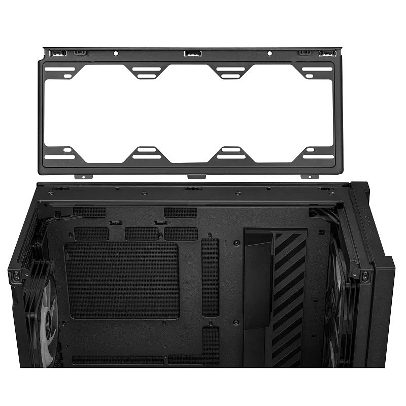 TUF Gaming GT302 ARGB je midtower ATX skříň se čtyřmi 140 x 28 mm ARGB ventilátory pro vysoký průtok vzduchu a statický tlak, vyměnitelné boční panely a podpora základní desky se skrytými konektory.