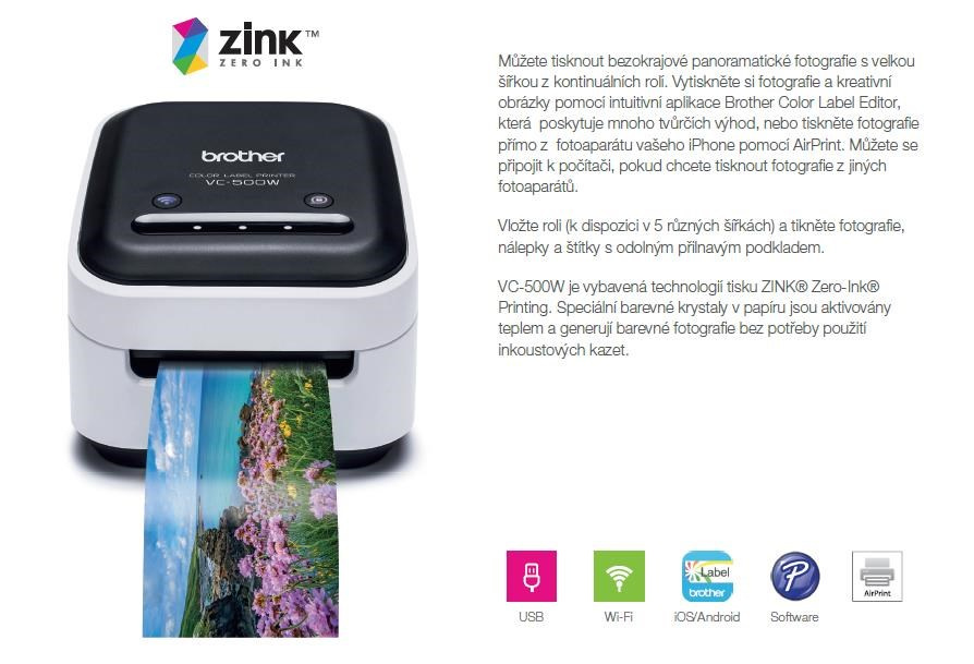 BAZAR - BROTHER tiskárna štítků FOTO - VC500W - WIFI, USB, COLOR bez potřeby inkoustu - Integrovaný odstřih - Poškozený