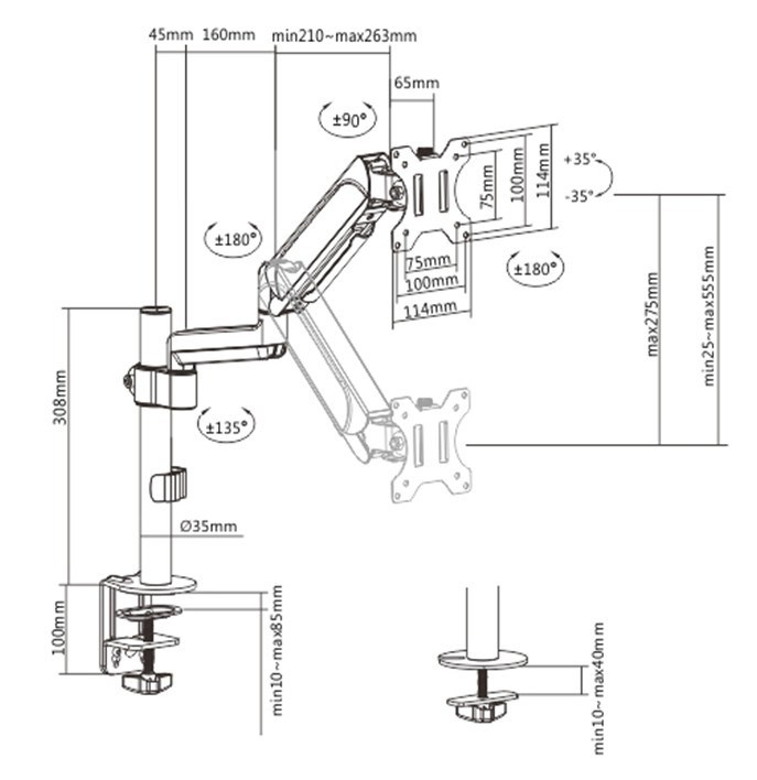 | Rozsah nakláňania | +35° ~ -35° |