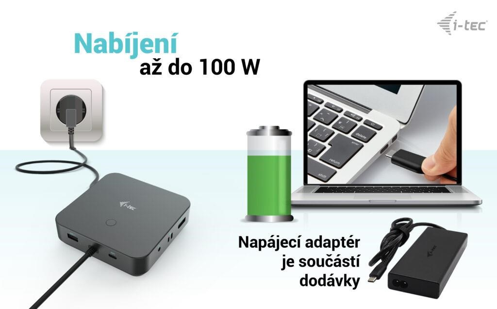 Poskytuje až 100W Power Delivery pre kompatibilné notebooky a tablety s rozhraním USB-C, USB4 a Thunderbolt. Hostiteľské zariadenie musí podporovať USB-C Power Delivery.