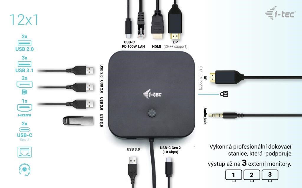 Poznámka: 100W napájací zdroj je súčasťou balenia. Dokovaciu stanicu je možné použiť aj s napájacím zdrojom USB-C dodávaným s vaším notebookom, takže si ju môžete kúpiť samostatne bez napájacieho adaptéra, pod kódom C31TRIPLE4KDOCKPDPRO.