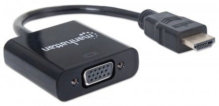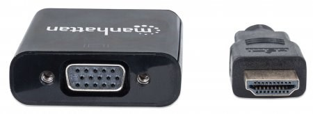 prevodník Manhattan HDMI na VGA pomáha vytvoriť rýchle, jednoduché a pohodlné prepojenie medzi novšími stolnými počítačmi a notebookmi vybavenými rozhraním HDMI a inými zdrojmi médií s existujúcimi monitormi VGA, projektormi a inými zobrazovacími zariadeniami. Prevodník Manhattan HDMI na VGA sa ľahko a rýchlo inštaluje a nevyžaduje si žiadnu zložitú konfiguráciu alebo nastavenie, aby pomohol predĺžiť životnosť a plne využiť investície a hodnotu starších displejov VGA, projektorov a iných zariadení. Toto úsporné, nákladovo efektívne a spoľahlivé riešenie umožňuje používateľom prejsť na šírku pásma HDMI, rozlíšenie, technológiu Deep Color a ďalšie funkcie bez toho, aby museli prechádzať na novšie a drahšie monitory a projektory. Jeho integrovaná konštrukcia typu "všetko v jednom" pomáha dosiahnuť kompaktné, integrované riešenie, ktoré eliminuje zbytočné káble, spleť a neporiadok, aby boli inštalácie a pracovné priestory čisté a usporiadané. Jeho port Micro-USB umožňuje v prípade potreby ďalšie napájanie.