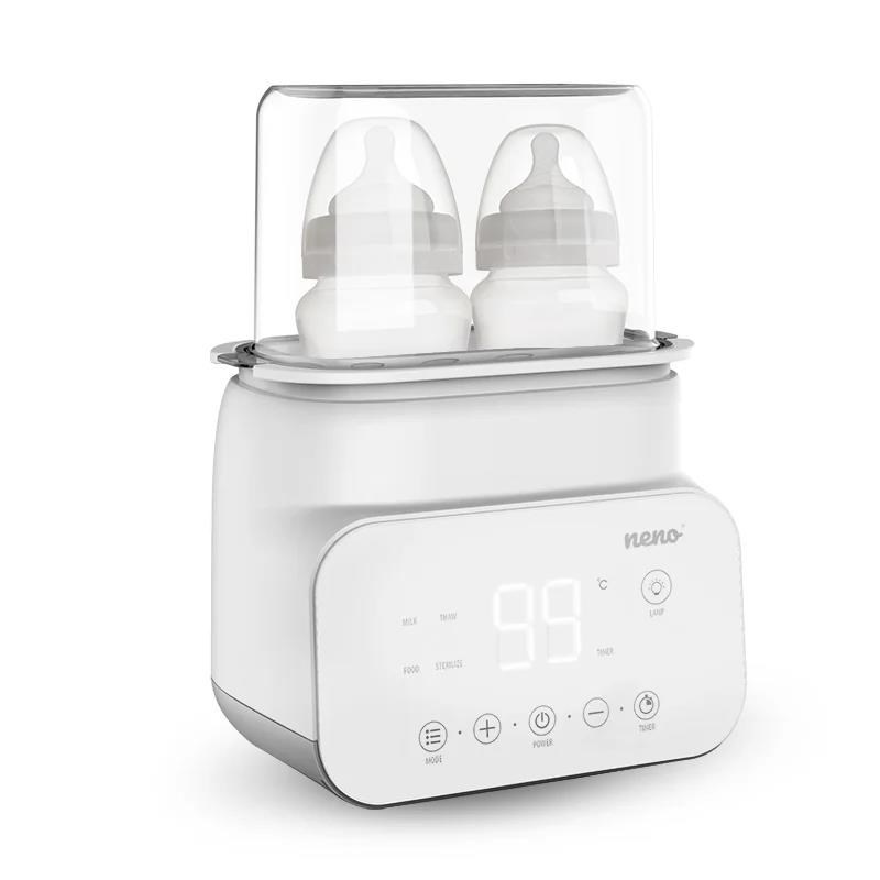 Neno Vita je vybavená funkciou sterilizácie, ktorá vám umožní udržiavať fľaše, cumlíky alebo hrkálky hygienické a sterilné. Pomocou priloženého sitka na fľaše vyberte predmety po sterilizácii bezpečne a pohodlne, aby ste si nepopálili ruky. Prístroj najskôr zohrieva vodu na 100 °C a potom fľaše počas len 10 minút sterilizuje a pripraví na použitie. Zariadenie má funkciu ohrevu mlieka, ktorá umožňuje rýchlo a plynulo zohriať mlieko pre vaše dieťa. Všetko, čo musíte urobiť, je vybrať správnu teplotu v nastavení a začať zohrievať mlieko. Naše zariadenie má funkciu rozmrazovania, ktorá vám umožní rýchlo rozmraziť jedlá pre vaše dieťa a ohnúť ich na zvolenú teplotu, aby boli pripravené na podávanie. Vita je vybavená funkciou ohrievania jedla, ktorá umožňuje jednoduché a rýchle zohrievanie jedla pre vaše bábätko. Vďaka vestavanej funkcii rozmrazovania môžete rozmraziť nielen hotové jedlá a polievky, ale aj tvrdé suroviny ako ovocie, zeleninu a ďalšie. Všetko, čo musíte urobiť, je vložiť mrazené potraviny do nádoby a vybrať možnosť rozmrazovania na displeji. Neno Vita má vestavený nočné osvetlenie, ktoré vám umožní ho kedykoľvek použiť. Lampa je inštalovaná vo vnútri sterilizátora a jemne osvetľuje veko sterilizátora. Sterilizátor Neno Vita je vybavený zobrazovacím panelom, ktorý umožňuje plynulú navigáciu v prístroji a voľbu vhodného nastavenia podľa vašich preferencií. Naše zariadenie má zabudovaný jasný displej, vďaka ktorému sa zariadenie ľahko a intuitívne používa. Neno Vita kombinuje 4 funkcie: sterilizáciu, funkciu ohrevu jedla a mlieka a rozmrazovanie. Všetky tieto funkcie spojené v jednom zariadení zaručujú komfort používania a šetria miesto v kuchyni. Naše zariadenie má moderný a minimalistický dizajn, prehľadný LCD displej a veľké navigačné tlačidlá, vďaka ktorým je používanie jednoduché a pohodlné.