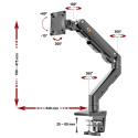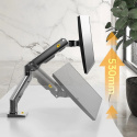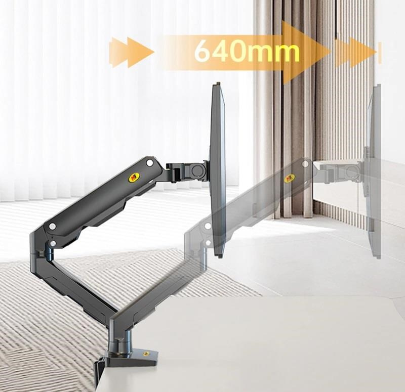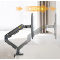 Držiak na monitor TV NB G50 Profesionálny stolný držiak na širokouhlý monitor alebo All in One Pc 27-45", otočný +/-180°, sklopný +60°/-15°, nastaviteľná výška od stola 190-475mm, nastaviteľná vzdialenosť 0-640mm, 1x port USB, 2 typy stolových úchytov, systém vedenia káblov, VESA štandardy 75x75 a 100x100, nosnosť 16kg Jeden z najkvalitnejších stolných držiakov pre zavesenie širokouhlých monitorov alebo All in One PC - profesionálny, poctivá konštrukcia, dizajn dôsledný do detailu a veľmi jednoduché polohovanie. Držiak odporúčame aj náročným zákazníkom, do vytížených prevádzok, kancelárií alebo showroomov. Svoje využitie nájde na každom stole. Držiak je ideálny na širokouhlé aj klasické monitory, All in One Pc alebo televízory s uhlopriečkou 27-45", u širokouhlých monitorov môže byť uhlopriečka aj väčšia. Podmienkou je hmotnosť v rozmedzí 5-16kg, u ľahších obrazoviek nebude možné výškové polohovanie. Držiak podporuje VESA 75x75 a 100x100, v prípade potreby ponúkame aj rozšírenie na 200x100, 100x200 a 200x200. Kompletná polohovateľnosť: otáčanie +/-180°, naklápanie +60°/-15°, jednoduché nastavenie výšky vďaka plynovému piestu od 195mm až do 475mm, nastavenie vzdialenosti od úchytu 0-640mm, funkcia pivot, port USB, dôsledné vedenie káblov, 2 typy stolových úchytov. Profesionálny stolný držiak na širokouhlé monitory a All in One Pc NB G50 Technické údaje: minimálna hmotnosť monitora alebo TV 5kg maximálna hmotnosť monitora alebo TV 16kg podporuje VESA štandardy 75x75 a 100x100 odporúčaná uhlopriečka monitora TV 27" až 45" ideálny na širokouhlé monitory, zobrazovacie zariadenia, All in One Pc alebo televízory otáčanie do strán +/- 180° naklápanie +60° / -15° nastavenie výšky od stolovej dosky 195mm až 475mm výškové polohovanie 280mm nastavenie vzdialenosti od stolného uchytenia 0-640mm funkcia pivot - horizontálne alebo vertikálne otočenie obrazovky 1x port USB na základni držiaka systém vedenia káblov 2 typy stolových úchytov (na okraj alebo cez otvor do priestoru) farebné prevedenie čierne záruka 5 rokov Profesionálny stolný držiak na širokouhlý monitor NB G50 Stolný držiak na širokouhlé monitory TV NB G50 podporuje VESA štandardy: VESA 75x75 VESA 100x100
