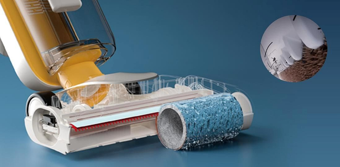 Inovatívny systém MHCBS (Multi-stage Hybrid Cleaning Brush System) zabezpečuje, že kefa sa počas celého upratovania vždy udržiava čistá – bez šírenia nečistôt späť na podlahu.