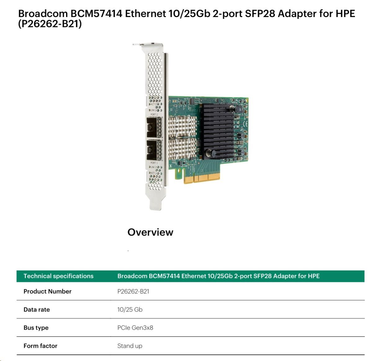Broadcom BCM57414 Ethernet 10/25Gb 2-port SFP28 Adapter