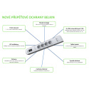Přepěťová ochrana je určena pro Evropský trh, v ČR/SK bohužel nefunguje funkce indikace uzemnění z důvodu odlišné stavby zásuvek. Nicméně přepěťová ochrana je plně funkční, signalizace uzemnění nemá vliv na její funkci